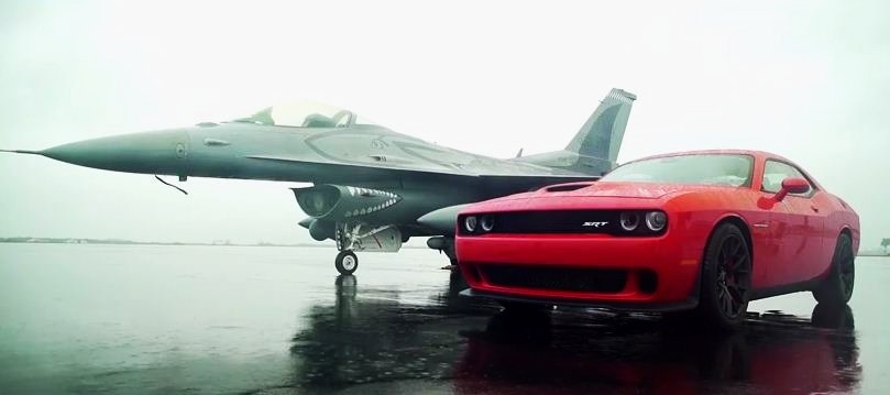 Challenger SRT Hellcat Races F16 Fighter Jet, Inevitably