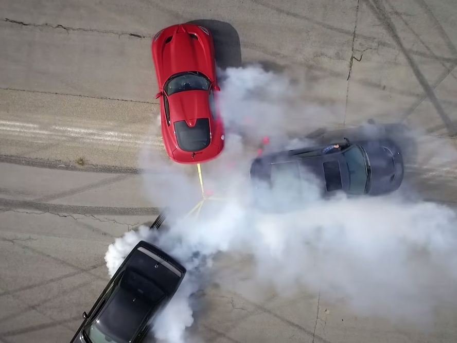 Then there’s more. A race with all tires lit up- now that’s not done before. Third up is powerslides. Sounds easy and looks easy when you watch Jeremy Clarkson go around “Hammerhead” sideways, but these guys are having some tough time. But hey, that’s not the end, so checkout the video for more intense Hellcat action.